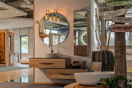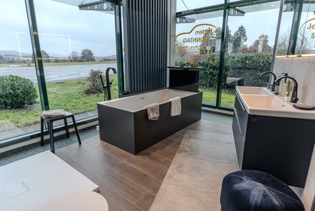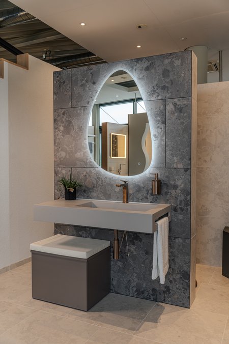 Ein weiteres Highlight am Standort Dillenburg ist die großzügige Auswahl an fugenlosen Wandverkleidungen. Wer seinem Bad eine moderne und besondere Note geben möchte, wird hier fündig. Fugenlose Elemente wie Duschrückwände, aber auch Komplett-Badezimmer mit fugenlosen Verkleidungen sind nicht nur optisch ein Hingucker, sondern sie überzeugen auch durch hygienische Vorteile, da weniger Flächen zur Ansammlung von Schimmel und ähnlichem vorhanden sind. Gleichzeitig sorgen fugenlose Wandverkleidungen für eine ruhige und entspannte Optik und geben insbesondere kleinen Badezimmern mehr Raum.